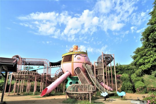 本日も昨日に続いて快晴。夕刻、赤碕に用事があったついでに道の駅「風の丘」に立ち寄って、丘の上からパチリ(1)。左に見えるのが赤碕港。2は同じ所にある遊園地のタコ。「寂しいよ~、おいでくれタコ~~~」と言っていた。 ・ 〔仕事と歩数〕塔社常任理事向け連絡書類作成&発送。5,112歩。