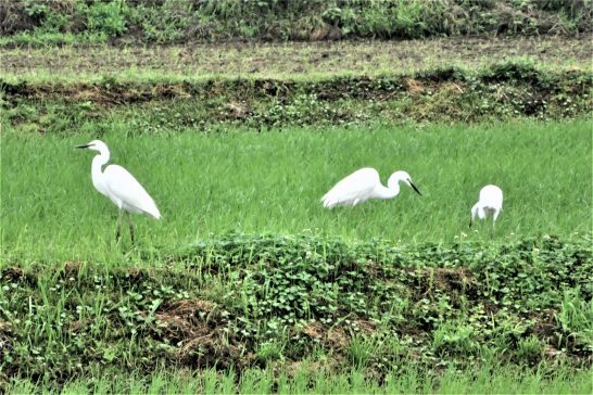 本日、昼前散歩は出来ず。夕刻、雨は止んでいたが降りそうな曇天だったので傘を持って散歩。写真1は夕刻散歩からの帰途、水田で仲良く餌をついばんでいた白鷺。 〔仕事と歩数〕まなびや出席&大山滝句座句箋の段取りなど。3,445歩。
