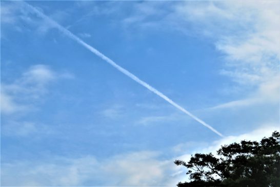 昨日のブログで「梅雨に再突入」と書いたが、本日の昼前から雲も切れて青空が出たが暑くもなく、爽やかな1日になった。写真は夕刻散歩での飛行機雲。 ・〔仕事と歩数〕毎日新聞「山陰柳壇」選考。4,870歩。