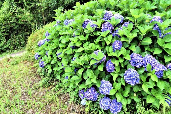 本日、薄日&曇天。昼前散歩は行けず、夕刻4時半頃から出かける。写真は農道沿いの鮮やかなアジサイ。〔仕事と歩数〕しんぶん赤旗「読者の文芸」柳壇選考。3,891歩。