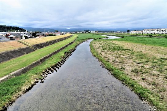 写真1、2、投句したあとぶらぶら歩いて出口橋の欄干から小鴨川をパチリ。3、民家の庭の隅に咲いていた桔梗?。帰宅してから夕刻散歩に出たが雨がポツポツ降ってきたのでUターン。〔仕事と歩数〕川柳マガジン「名句鑑賞」。5,697歩。