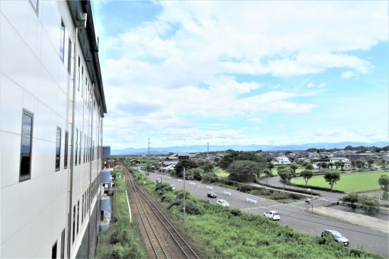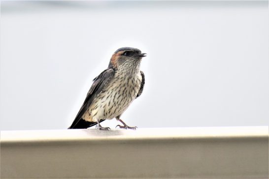 写真1、句会場の「まなタン」4Fのテラスから定点観測の鳥取方面をパチリ。 2,テラスに寄ってきたツバメの子。巣があった跡を見上げて「僕の家、こわれちゃたの?」と鳴いていた。(子ツバメが3匹ほど、何度も寄ってきて、その内の1匹は巣の跡の壁に止まったりしていた)