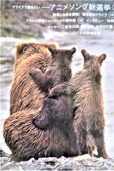 【JAF Mate】(日本自動車連盟の機関誌)の表紙写真はいつも素晴らしいが、数日前に到着した2021年8・9月合併号の表紙(写真上)は、母熊の背中にしがみついている小熊が可愛くて、しばらく見入ってしまった。この写真は動物写真の第一人者として知られている岩合光昭氏が撮影したもの。下の説明文と説明文に添えられた写真(下)も岩合氏。
