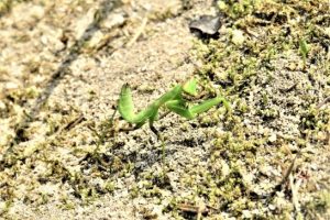 カマキリ、去年も車道に出ているのを、何匹か草むらに戻してやったので、その子供がお礼にきたのかもしれません。