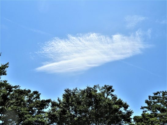 面白い雲 筏に大勢の人が乗っているように見えました。みんな立っていて 下界を覗き混んでいるような……(笑)