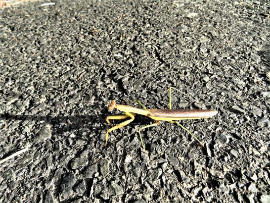 カマキリやバッタやイナゴ、そちらでは見かけなくなりましたか、都会なんですね。こちら、このシーズンになると、公園の遊歩道でも農道でもピョンピョン飛んできます。トンボや蝶々も何種類かヒラヒラ舞っています。