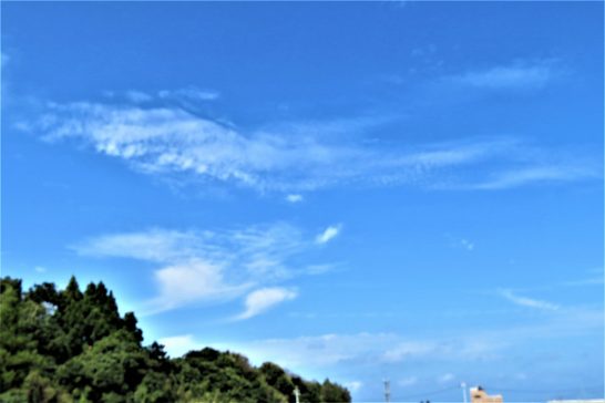 ・本日も快晴で季節外れの暑さ。昨日よりも少し蒸し暑く感じた。写真は昼前散歩での総合公園上空の雲。よく見ると海老🦐に似ていた。〔仕事と歩数〕打吹川柳会向け作句&出席。しんぶん赤旗「読者の文芸」再チェック後メール&投函。4,485歩。