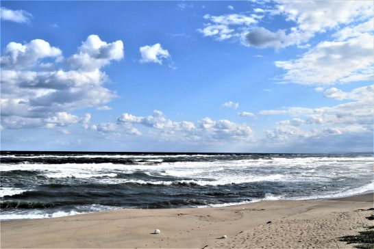 ・写真1。数日前から明け方になると海の音がゴーゴー。かなり荒れているなと思って、倉吉へ行く途中、北栄町の海岸でパチリ。2、夕刻散歩で農道をブラブラしていたら大きなムカゴが「どうぞお召し上がりください!」とぶら下がっていた。〔仕事と歩数〕鳥取県川協の仕事。毎日新聞鳥取柳壇選評。5,382歩。