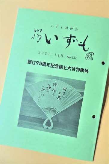 ・本日、掲題の発表誌が到着。写真2の扇に書かれているのは、「いずも川柳会」創始者である尼緑之助の「灯台の夕陽神話を抱きよせる」。私は「バランス」の選を仰せつかっていたので、その入選句からベスト8と、私の入選句をご紹介。