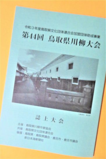 ・第44回鳥取県川柳大会の発表誌(写真2)が届いていますので鳥取県知事賞以下の受賞句をご紹介します。なお、同発表誌には鳥取県川柳作家協会賞(日満賞)の結果も載っていますが、日満賞は10月12日のブログでご紹介していますので今回は省略します。