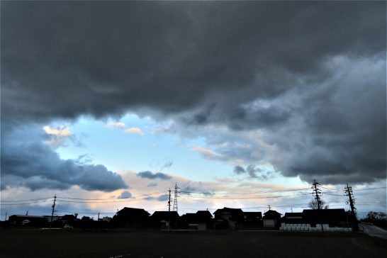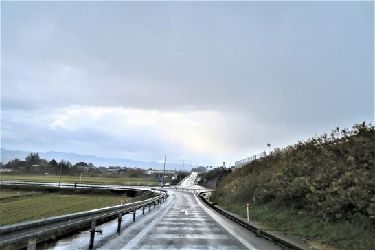 ・終日、時雨模様の曇天。写真1は、倉吉への往路。北栄~真庭道路(右上)の倉吉出口。2は、夕刻散歩の直前。夕方になって一段と風が冷たく小雨も降っていたので「散歩は止め」と思っていた。が、雨も止んで青空も見えてきたので傘を持って出かけた。だが、傘を使うことはなく歩いている内に温もってきた。明日は好天になりそう。天候に気分を左右されるのは修行が足りないということだが、予報で☀マークが出ているとやっぱり嬉しい。〔仕事と歩数〕倉吉川柳会向け作句&出席。5,512歩。
