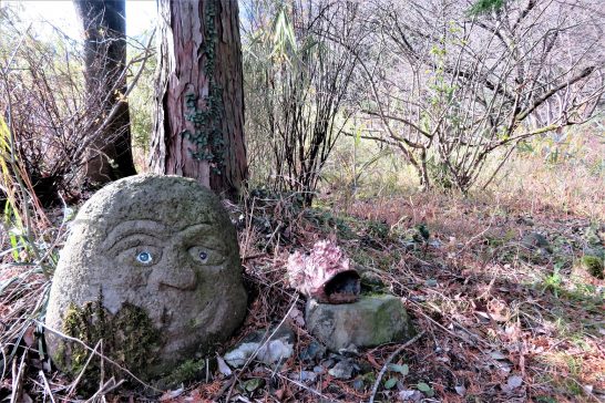 写真1、小屋真下の加勢蛇川上流の清流。2、ベランダが腐食して雑草が延びていた。この修繕も来春。3、石花菜さん作の目玉地蔵と自作のお賽銭受けアンコウ。4、小屋近くの柿。熟したのを1つ頂戴したが、渋が抜けて旨かった。特に種の周りのヌルヌルが旨かった。〔仕事と歩数〕山陽カルチャー資料作成。山小屋片付け。5143歩。
