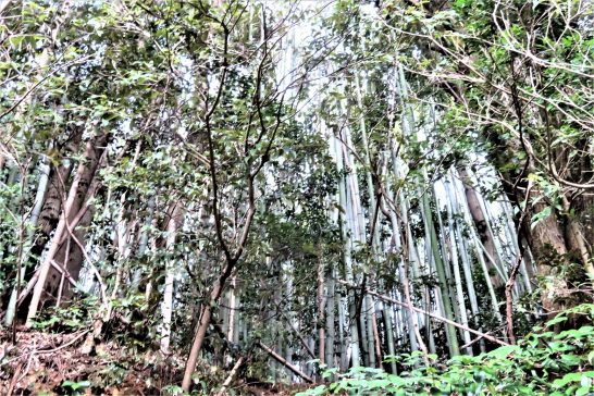 ・今日から明日にかけて今シーズン最大の寒気団が襲来。昼前散歩でも強風が吹き荒れていたので、風が来ない切り通しのような間道(写真1)をブラブラ。ただ、伸び放題の竹藪(写真2)が強風の度に互いにぶつかって「ガラガラ!」とか「ゴンゴン!」とかの音が不気味だった。〔仕事と歩数〕愛染帖選考。4,585歩。