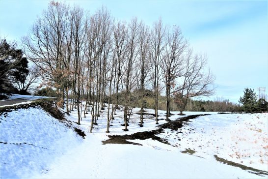 ・拙宅から総合公園の駐車場までは車で3~4分ぐらい。最近は家に閉じ籠ってデスクワークが多いので、気晴らしに少し大回りして9号線経由で行くことが多い。久しぶりに快晴になった今日の昼前散歩も9号線 経由で出掛けた。途中にパチンコ屋があるので何気なく駐車場を見ると大盛況! 土曜日に加えて田畑が冠雪しているので農作業も休みということだろう。