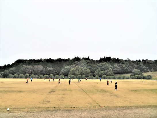 ・写真上、昼前散歩の総合公園にてサッカーの試合。長靴を履いている人もいたので仲間内の練習試合だろう。〔仕事と歩数〕大山滝句座会報作成、PCインプット。5,260歩