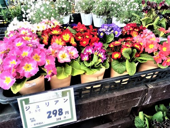 ・本日、昼前散歩では風がきつかったので、風が当たらない切り通しをぶらぶら。夕刻散歩では小雨だったので、買い物がてらホームセンターへ。店内をウォーキングしてあれこれ物色して、結局、残り少なくなってきたマスク(1箱50枚入り)をゲット。外へ出てもまだ降っているので、花売り場をブラブラ。拙宅プランターのビオラはずっと世話になっている苗屋さんから買っているので、このホームセンターの花売り場をゆっくり見るのは初めて。鮮やかな色のを見つけたのでパチリ。写真1は【ジュリアン】。2は【肥後ポリアン】と書いてある。花木の名前にも疎いので、帰宅してからネットで調べたら。プリムラ・ジュリアン、そして、プリムラ・ポリアンサスとのこと。このような派手な色合いも悪くはないが、ずっと見ていたら飽きるのではないか。スミレなど素朴な野の花の方が飽きないのではないか、等と思ったが…。まあ、余計なお世話、好き好きだろう。 〔仕事と歩数〕川柳マガジン向け「名句鑑賞」着手。5,963歩