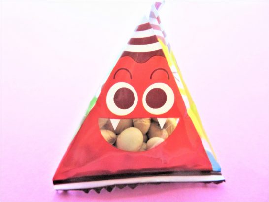 ・写真、昨日の坐禅会で頂戴した茶菓子の中に入っていた三角錐の袋。よく見たら鬼の顔で、中に節分の豆が入っている。今夜はこれを肴に腹の中の鬼退治‼ 〔仕事と歩数〕「川柳展望」会員作品評着手。5,358歩。