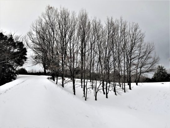 ・写真1~3、夕刻散歩の総合公園にて。昨日、駐車場あたりの積雪は5~10センチだったが、今日の総合公園遊歩道あたりは15~20センチ。それでも数人の👣があった。野球場の遥か先に見える黒い直線は日本海の水平線。〔仕事と歩数〕センマガ懸賞川柳選考。しんぶん赤旗「読者の文芸」見直し後メール。4,804歩。