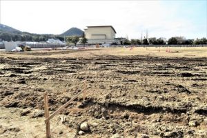 ・写真2は、句会場の西側で11日に県立美術館の起工式が行われたグランド。正面の建物は「倉吉未来中心」。建物左の山は打吹山(204m)。