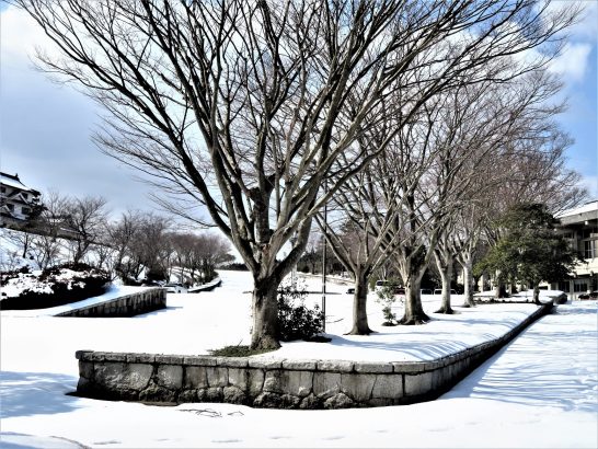 ・写真1、昼前散歩にて。総合公園エントランス。まだ雪がたっぷり残っている。 2、一面の雪の中で微笑んでいた梅。〔仕事と歩数〕瓦版3月誌上句会向け作句&投函。センマガ名句鑑賞着手。5,122歩。