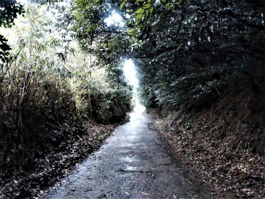 ・本日、朝からずっと雨。気温も下がって肌寒い一日だった。昼前散歩は買い物ついでにマーケットをうろうろ。夕刻散歩はいつもの切り通しを傘差してブラブラ(写真上)。〔仕事と歩数〕川柳塔社「愛染帖」選考。4,040歩。