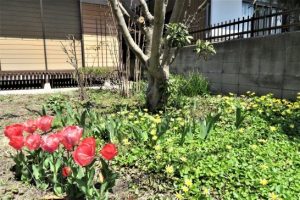 ・また、外回りばかりではなく、義姉宅の庭も店の前のプランターも花盛り。写真5は、昨年いただいたチューリップの球根を義姉宅前に植え込んだもの。植え込み方が浅かったか?とちょっと心配したが元気よく咲いてくれた(間隔が狭かったか)。6は店の前のビオラ。寒さに強いが暑さに弱いので、元気に咲いてくれるのは後ひと月ぐらいだろう。〔仕事と歩数〕山陽カルチャー資料作成。5,407歩。