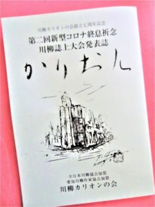・本日、【第二回新型コロナ収束祈念川柳誌上大会】川柳カリオンの会の発表誌(写真2)が到着。私の選による課題【心残り】の上位入選句と私の入選句をご紹介。