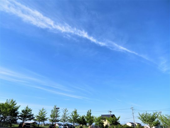 ・本日、湿度も少なく爽やかな快晴。最高気温も24℃止まりで歩いていても快適だった。写真1は夕刻散歩(午後4時30分)の飛行機雲が崩れた雲(だと思う)。 〔仕事と歩数〕大山滝句座会報作製&発送。4,850歩。