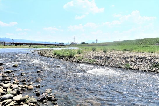 ・写真1は会場すぐ傍の「小鴨川」の清流。本日も最高気温35℃を超す猛暑日。この写真を撮るために河原をぶらぶら歩いていたら汗が噴き出して、会場のクーラーの効いた部屋に戻るとハックション!