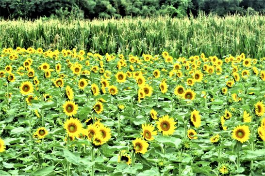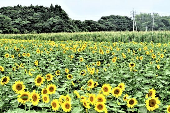 ・写真1、2共に昼前散歩での農道脇のヒマワリ畑(後ろの背の高いのは飼料用トウモロコシ)。鮮やかな黄色に元気を頂戴した。〔仕事と歩数〕センマガ懸賞川柳2022【皐月賞】選考。5,113歩。