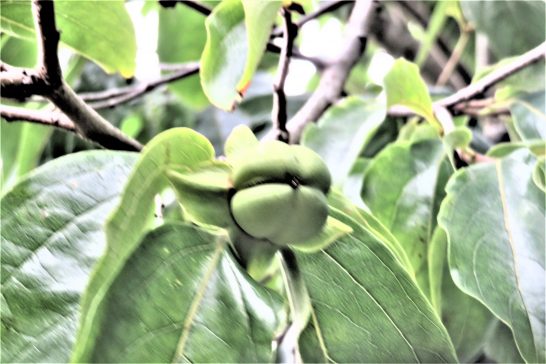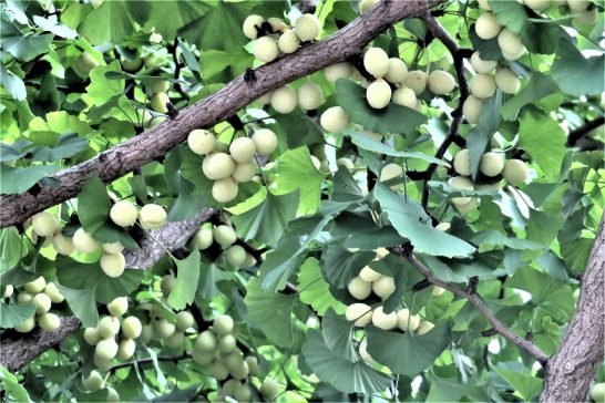 ・写真1、葡萄のように見えるが公孫樹のギンナン。2,赤ちゃんのイガグリ。3、赤ちゃんの柿。人間の思惑も都合も感傷も関係なく、季節は駆け足で過ぎてゆく。