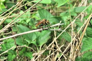 ・写真1、大きくなった飼料用トウモロコシ(右)。2、夕刻散歩でピョンピョン飛んできた青蛙🐸。23日にアップしたのと同じ位の大きさ。3、これも夕刻散歩にて。虻?なのか? 〔仕事と歩数〕瓦版など月末締め切りの投句に向けて作句。5,313歩。