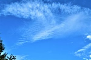 ・写真1、坐禅からの帰途。上郷谷を振り返って。稲が綺麗な色ですくすく育っていた。2、夕刻散歩にて。線状の雲。〔仕事と歩数〕コレクション補充&作句。5,531歩。