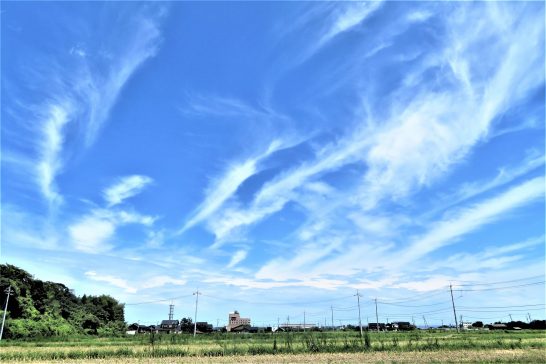 ・本日も猛暑日。昼前の散歩では濡れ手拭いを忘れたが大丈夫だった。青空に雲が綺麗な模様を描いていた(写真1)〔仕事と歩数〕某企業川柳コンテスト選評。明日の塔句会向け作句&段取り。5,515歩。