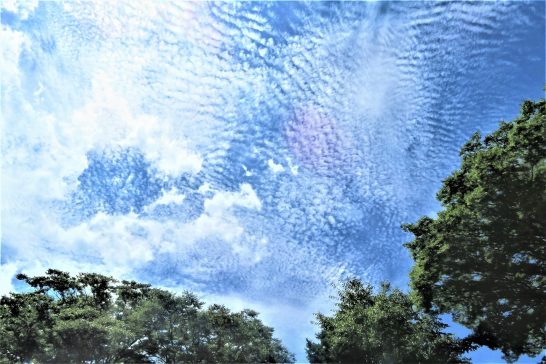・本日、朝から快晴。最高気温は32℃の予報だったが、湿度も少なくて凌ぎやすく、散歩のときも濡れ手拭いは不要だった。写真いずれも、昼前散歩にて面白い形の雲があちこちに広がっていた。しかし、夕刻散歩ではちょっと蒸し暑くなっていた。・ 〔仕事と歩数〕愛染帖選考完了後PCインプット。5,652歩。
