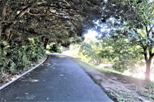 ・本日、午前中は雲ひとつない快晴で残暑厳しく最高気温31℃! 24日のブログでは「小雨を避けて木陰を歩いた」が、今日の昼前散歩では、日差しを避けて木陰を歩いた(写真1、2)。だが、午後から雲が広がり、夕刻散歩では途中から小雨が降ってきた。〔仕事と歩数〕風鐸賞選評。8月末締め切り向け作句。5,570歩。
