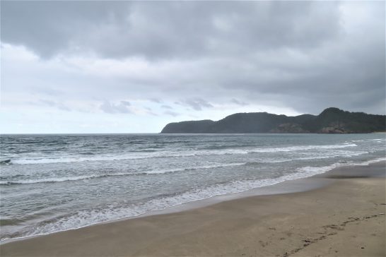 ・写真1、曇天の浦富海岸イーストサイド。2、ウエストサイド。 波が荒くて、♪・今はもう秋~ 誰もいない海~~ トワ・エ・モアの歌のムードではなかった。 〔仕事と歩数〕岩美川柳会向け作句&出席。6,117歩。