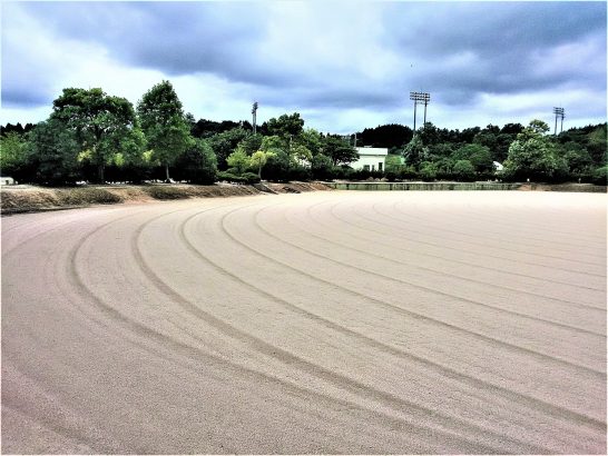 ・写真1は、総合公園の予備グランド。正式のサッカー場は芝生が張ってあり、野球状も外野は芝生。だが、このグランドはサッカーや野球に限らず何にでも使えるグランドで芝生ではなく、ご覧のように土。今日見たら珍しく綺麗な弧を描いて整備してあった。しかし、見た目は綺麗だが、サッカーとか野球などの球技には凹凸のある円弧模様は邪魔ではないか。〔仕事と歩数〕毎日新聞山陰柳壇選考&PCインプット。6,420歩。