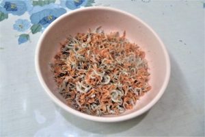 ところが先日、岩美川柳会会場近くのマーケットをぶらぶらしていて「素干しあみえび」と表示されている小エビようなのを見つけた。それをジャコと混ぜるとなかなかの珍味で、ご飯のふりかけでもイケる。この原材料はイサダ(オキアミ)と記されている。先ほど「イサダ」をネットで調べると次のような記述があった。(青色太字は私の脚色)