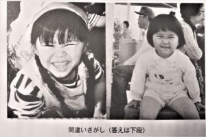 ・写真下は、この発表誌の最後の頁に「間違いさがし」として載っていたもの。同じ子供の写真かと思ったら母(おりひめ)と娘とのこと。う~~ん、ビックリポ~~ン!!