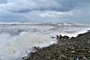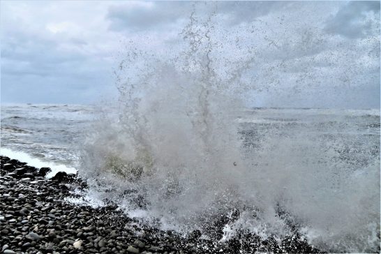 ・写真1、昼前散歩のとき、高台から波濤が見えたので、帰途、昨日撮った逢束海岸の同じ位置へ立ち寄る。さすがに昨日よりも凄い波になっていた。もう少し近づいてとカメラを構えたら、いきなりザッブン!と被ってズボンがびちゃんこ(写真2)。 3は、同じ位置から東側を観る。〔仕事と歩数〕愛染帖PCインプット。5,164歩。