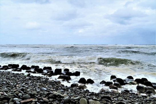 やっぱり日本海は情緒がありますね。子供の頃の思い出に、砕けた波が「脳裏」に残っています。