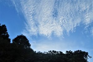 ・写真1、昼前散歩の総合公園にて。野球場で元気な声がするので、「少年野球か?」とバックネット裏に行ったらオッサン野球だった。2、夕刻散歩での面白い雲。 〔仕事と歩数〕鹿野川柳会出席ほか。6,371歩。