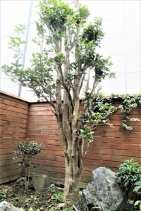 ・このブログにも書いているが、昨年か?今年早々だったか? 強い風が吹いたあと、我が家の西側に建つアパートの管理人から、「お宅の樹の枝が煩いと苦情が来ていまして…」と申し入れがあった。枝がかなり伸びているとは思っていたので、業者に頼んで強選定をしてもらった(写真2)。狭い庭で頑張って大きくなったのに申し訳ないことだった。さて、来年は枝葉を伸ばして良い香りを漂わせてくれるのだろうか。