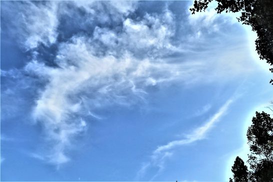 ・今朝の予報では☁と☂だったが、午後からは晴れてきて、夕刻散歩ではおもしろい雲が出ていた(写真1)。〔仕事と歩数〕センマガ「名句鑑賞」。5,466歩。