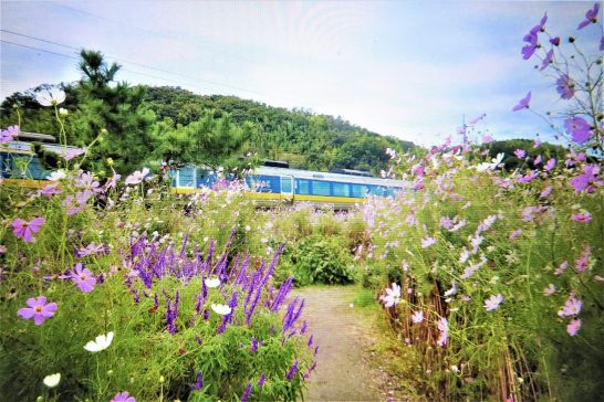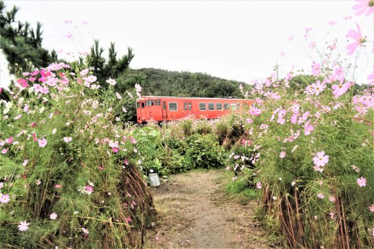 ・倉吉の木天麦青さんが今年も「コスモス迷路」を造っておられて、昨日、前田楓花さんからメールで写真を送っていただいた。写真1が、その内の1枚で、丁度JRの列車が背景に写っている。今日、倉吉へ出かける途中に立ち寄って写していたら、列車の音がしたので振り向いて撮ったのが(2)。ほか(3(4)(5)もコスモス迷路。立ち寄ったのは午前中で、小雨模様だったので私の他は誰もいなかった。