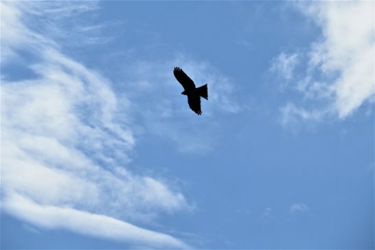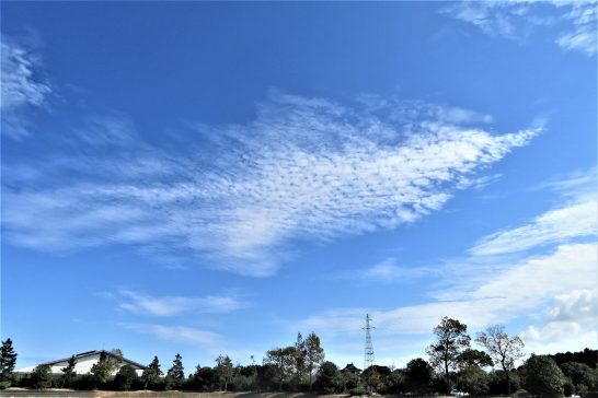 ・本日も昨日に続いて爽やかな秋晴れ。写真1、幻の魚のような雲。2、今日も鳶が気持ち良さそうに悠々と輪を描いていた。〔仕事と歩数〕山陽カルチャー資料再チェック後予習ほか。6,634歩。