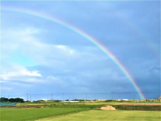 虹が大きく見えるのは、建物などの障害物がないからでしょうか。左の端まで撮ろうと思いましたが、頂点から左は薄れてほとんで見えませんでした。