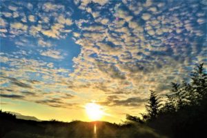 この写真を撮ったのは、昨日の午後5時15分前ごろでした。その丘からぶらぶら下りて、しばらくして帰宅して、駐車場から西空を見たら、この雲はきれいに消えて、あっけらかんとした夕映えだけでした。とても不思議で、狐につままれたような気分でした。