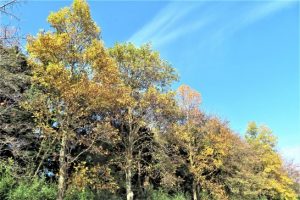 本日も爽やかな秋日和だったが、夕刻散歩では少し雲が多くなった。写真共に昼前散歩での総合公園の鮮やかな紅葉。微風に揺れてキラキラ光っていた。〔仕事と歩数〕川柳展望「会員作品評」。6,055歩。